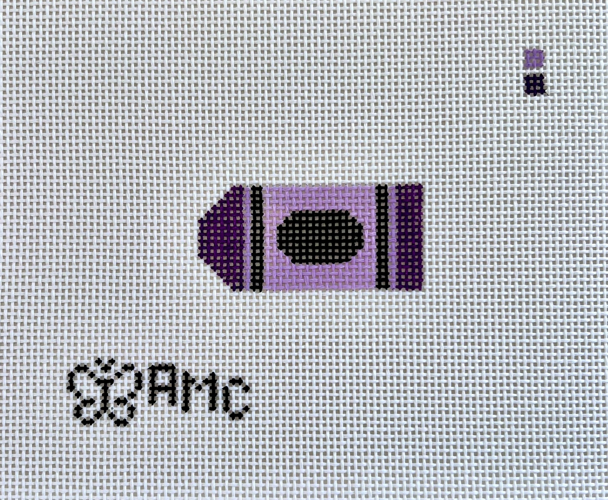 The Mini Crayon is a 2.5" X 1.25" design hand-painted on 13 mesh, with a total canvas size of approximately 7" X 6". You can personalize it with a letter, and it's a great gift idea for a teacher. It can be finished into a bag charm, a scissor fob, or a small ornament. This canvas is available in 7 beautiful colorways: Pink, Red, Orange, Yellow, Green, Blue & Purple.